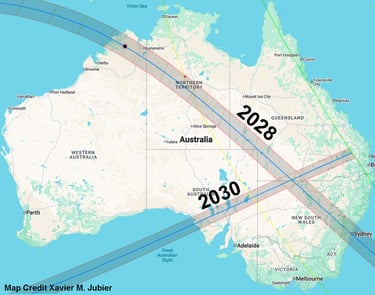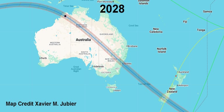 Amazingly, Australia gets what the United States had in 2017 and 2024, eclipse paths that cross. So folks who live in the cross don't even need to travel to see two eclipses, weather permitting.