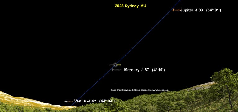 I have already been working on sky charts for 2028 and discussing them in the book. This may be a good eclipse to image Mercury during totality.