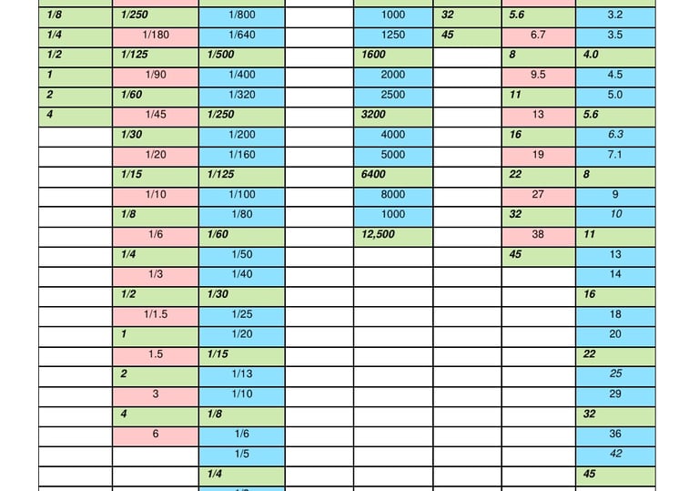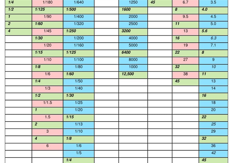 Use my custom Master Stop Chart to count exposure stops up and down and figure out your exposure settings.