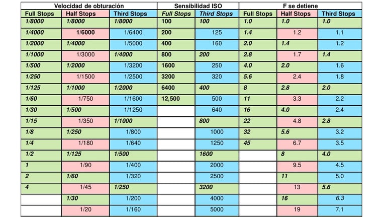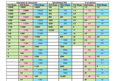 Utilice mi tabla maestra de paradas personalizada para contar las paradas de exposición hacia arriba y hacia abajo y determinar la configuración de exposición adecuada.