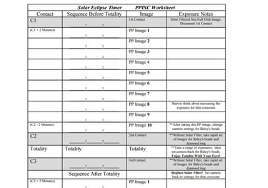 Use this sheet to write down the times generated by the app for your observing position. These are the 20 times that you will take an image to get a perfect partial phase eclipse sequence.