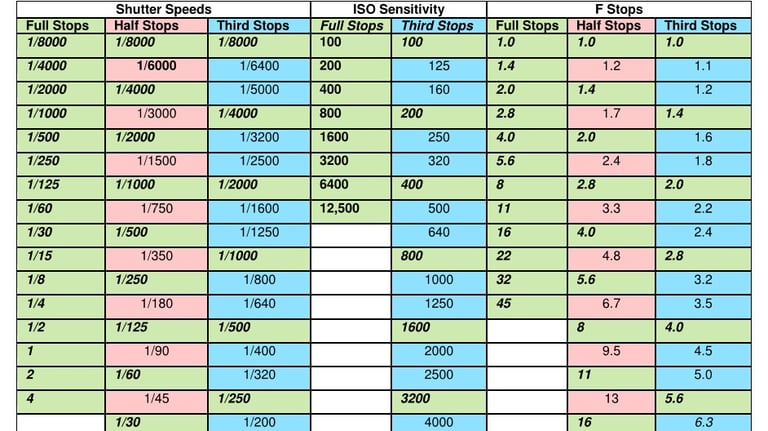Use my custom Master Stop Chart to count exposure stops up and down and figure out your exposure settings.